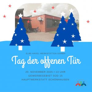 Am 20.11.2025 ab 13 Uhr öffnete die Hauptwerkstatt in Schönhausen ihre Türen. In vorweihnachtlichem Ambiente konnten die Besucher und die Angehörigen unserer Werkstattbeschäftigten eine Vielzahl